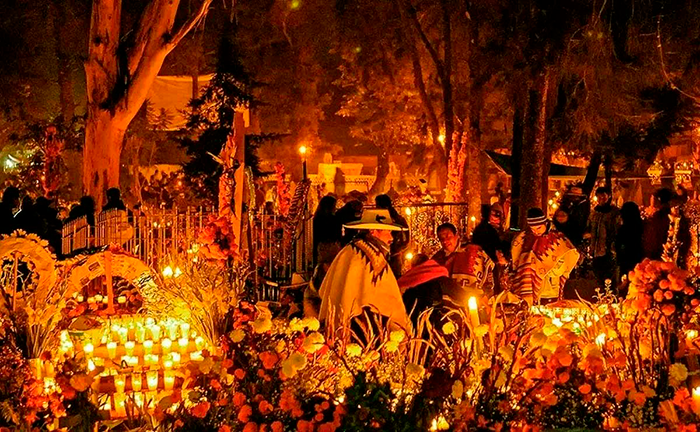 La tradición purépecha del Día de Muertos, concentrada en la región lacustre de Pátzcuaro, Michoacán, es una de las manifestaciones más emblemáticas de México.7 Su núcleo ritual es la Animecha Kejtzitakua o Fiesta de las Ánimas, que culmina en la velación nocturna, una vigilia ancestral que se extiende desde la tarde del 1 de noviembre hasta el amanecer del día 2.7 Durante estas horas, las familias se congregan en los cementerios para acompañar a sus difuntos en un acto que no es de luto, sino una "celebración a la memoria".6 El Lago de Pátzcuaro es un actor central, pues se convierte en el umbral místico que las almas deben cruzar, reforzando la sacralidad del entorno geográfico.9 La atmósfera es de profunda reverencia; el aire se impregna del aroma a copal y cempasúchil, mientras miles de velas iluminan las tumbas, creando una "noche luminosa" que guía el camino de las almas.8 Las familias permanecen toda la noche en vigilia, "celebrando, cantando y danzando", compartiendo alimentos y orando junto a las tumbas, que se adornan meticulosamente con arcos de flores, frutas y los platillos favoritos del difunto.10