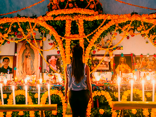 Altar de tres niveles (cielo, tierra, inframundo); decoración más sobria, sin calaveras de azúcar.19 |