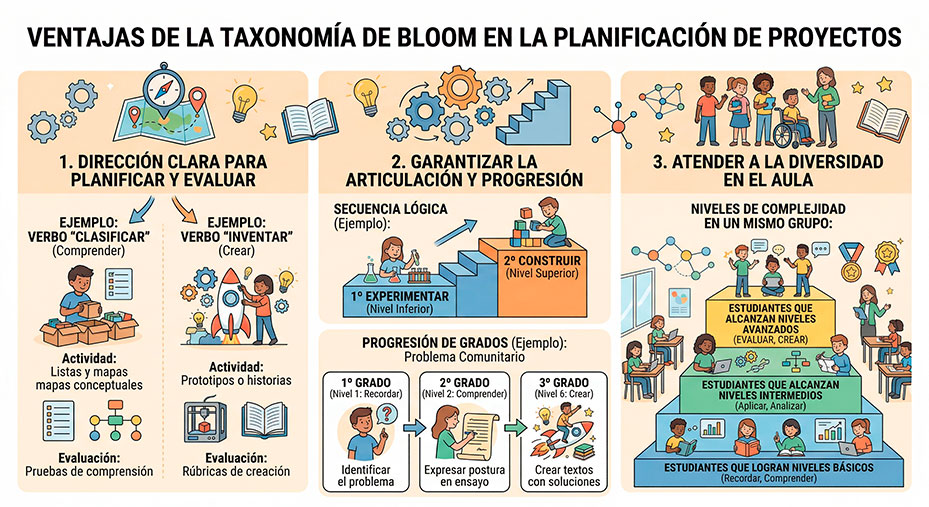 Implementar la Taxonomía de Bloom en el análisis de los PDA nos brinda tres grandes ventajas en nuestra planificación: