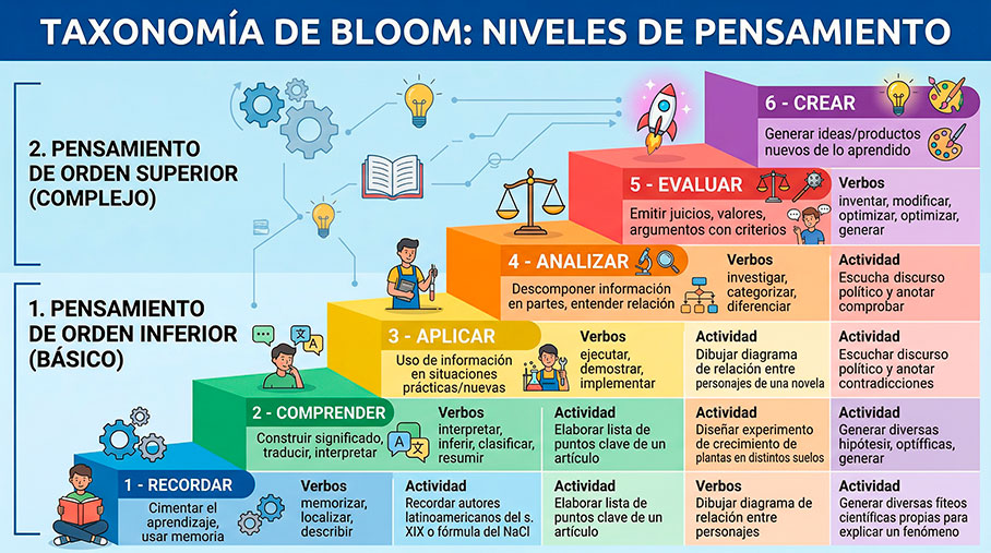- Dirección clara para planificar y evaluar: Al saber si el verbo es "clasificar" (comprender) o "inventar" (crear), sabremos inmediatamente qué tipo de actividades proponer y qué tipo de evaluación aplicar para medir ese nivel exacto de desempeño.